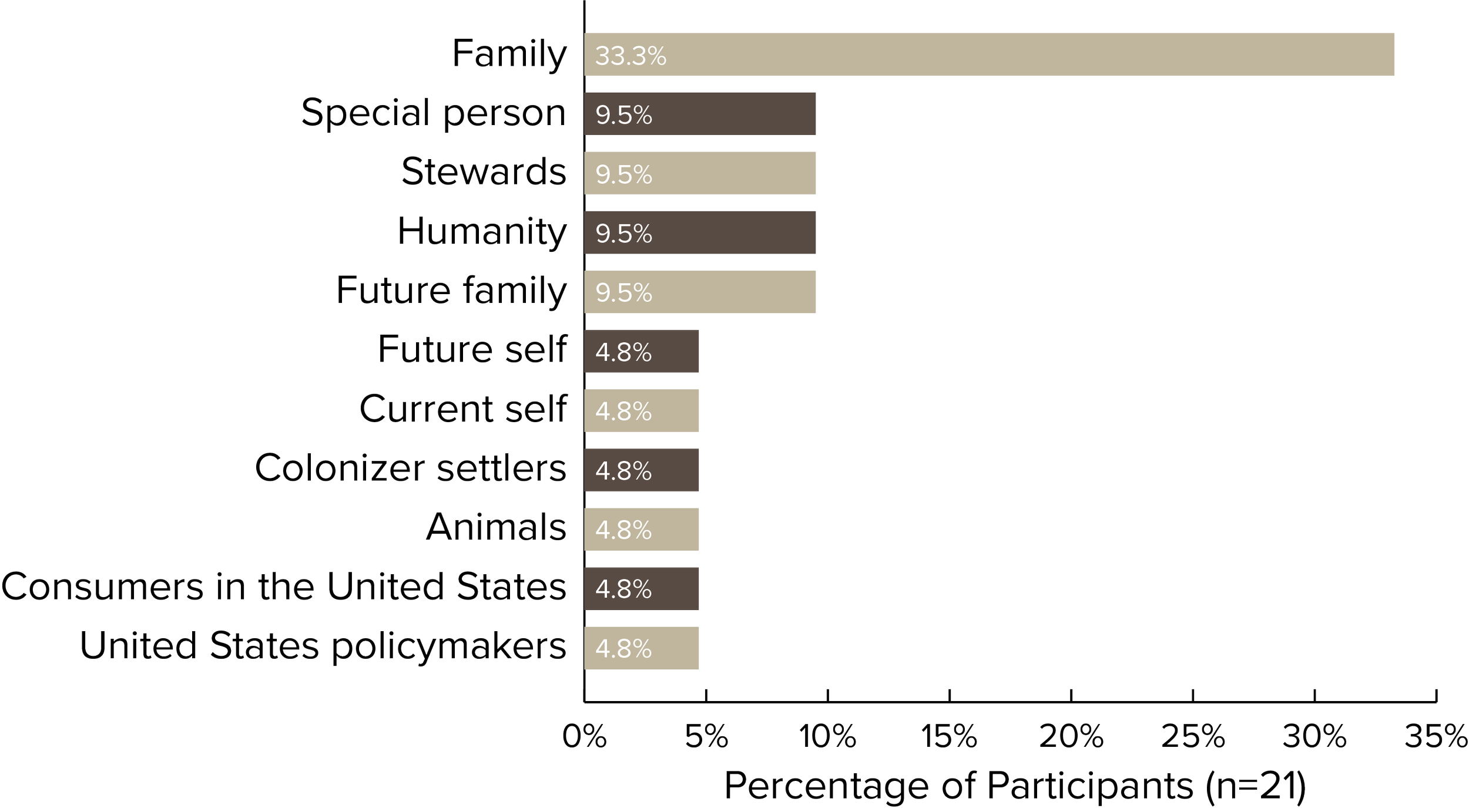 Overwhelmingly, participants addressed their climate postcard to family (28%). Less common was addressing their postcard to future family, humanity, a special person, and stewards of the environment (8%).