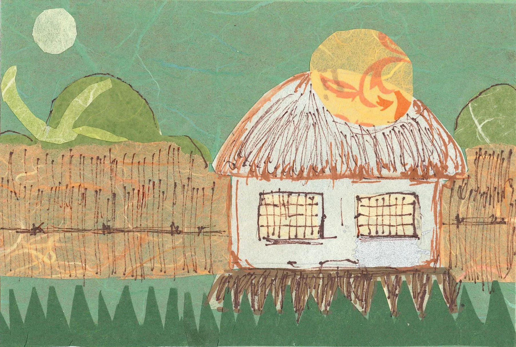 “The postcard of the place is here. The Sonoran Desert where I was born, and where my mom was born and my grandma was born... I did collage of the Tucson mountains because they’re my favorite. And another two things that are my favorite, which are crested saguaros and roadrunners.”