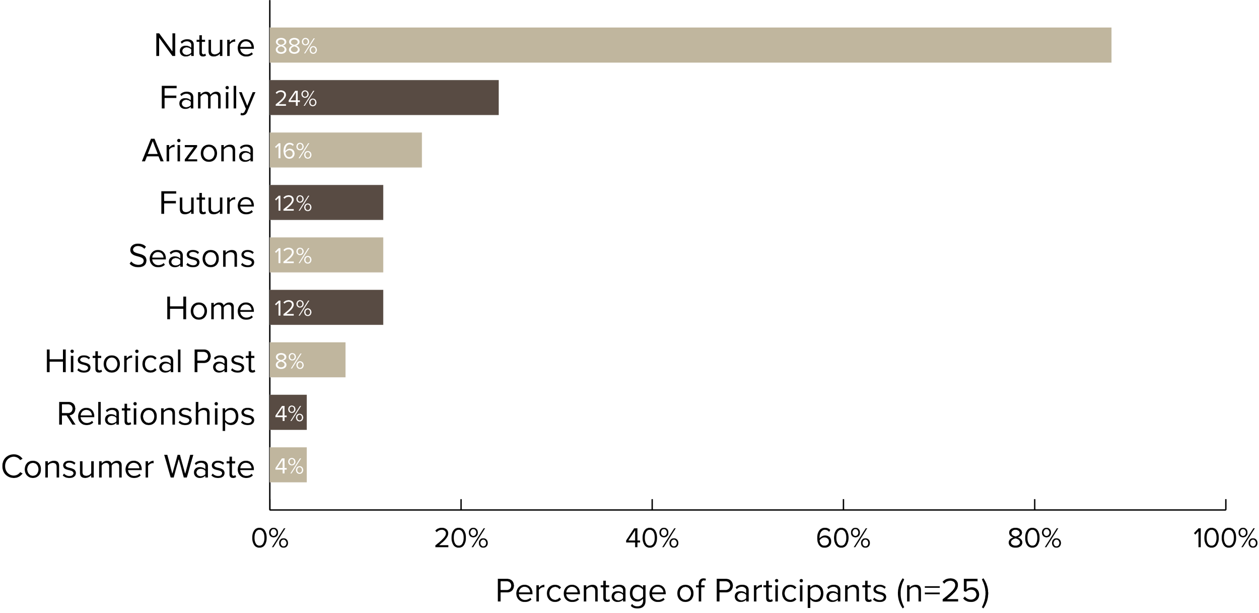 Participants shared what they chose to depict in their artwork. The majority drew on aspects of nature, place, family or home, with many noting the future and past. About a quarter of all participant postcards depicted an Arizona landscape
